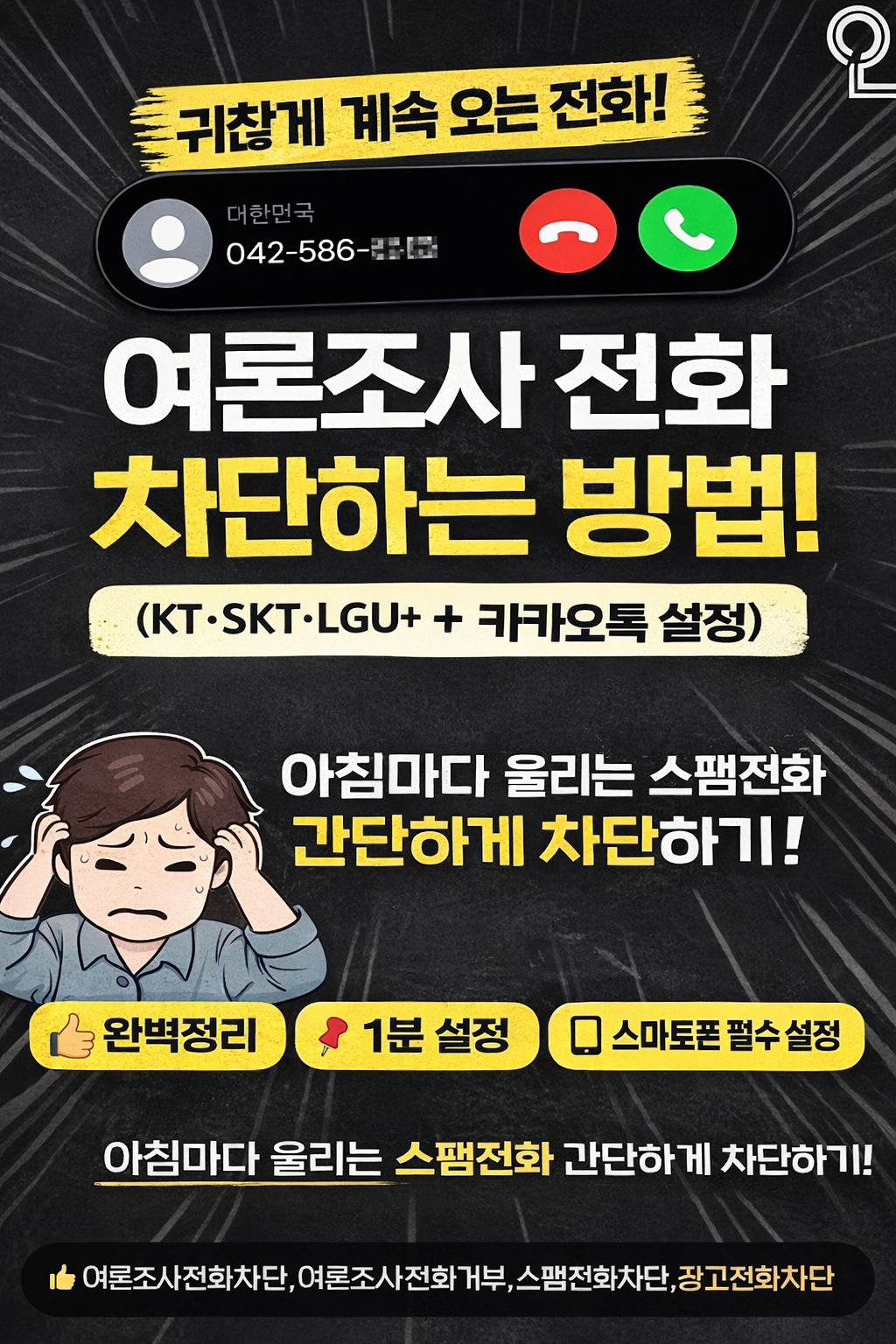 📞여론조사 전화 차단하는 방법 총정리 (KT·SKT·LGU+ + 카카오톡 설정)